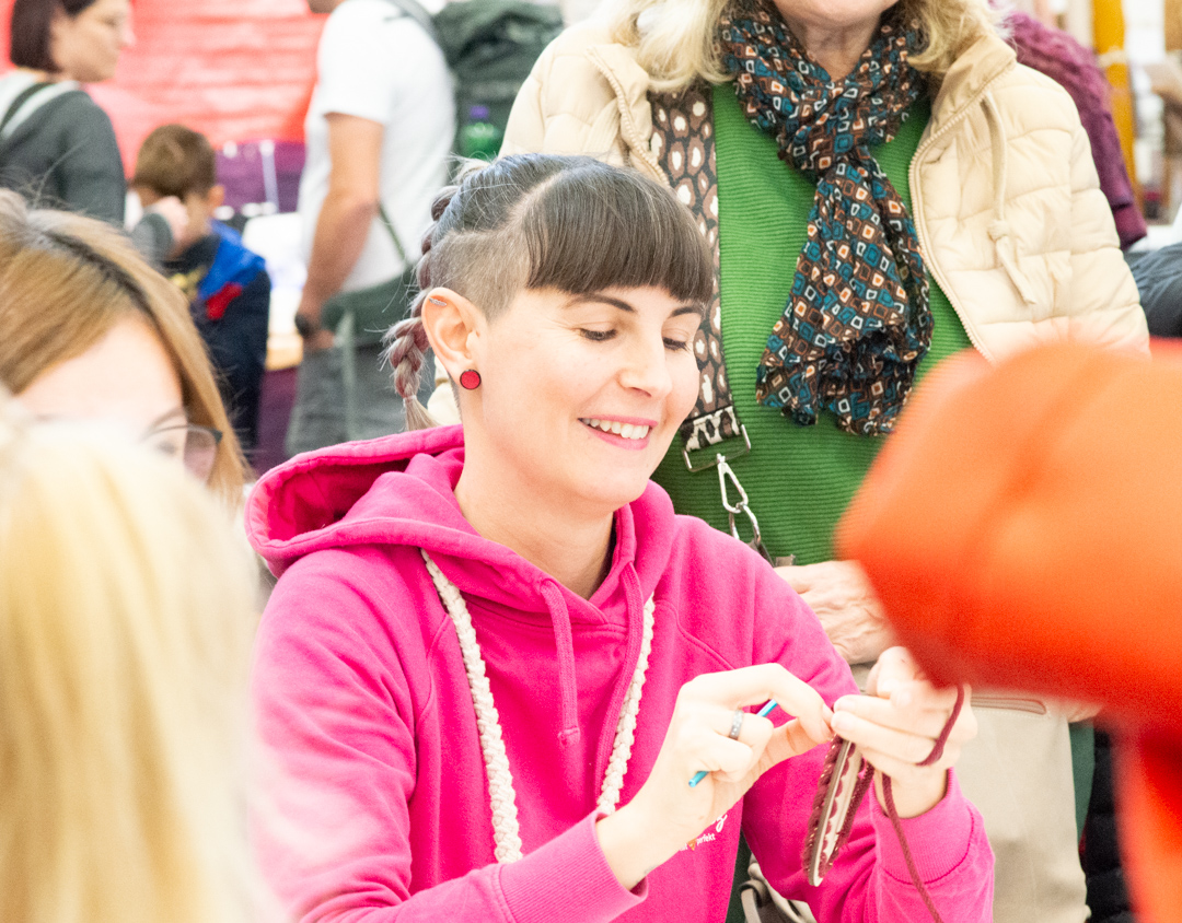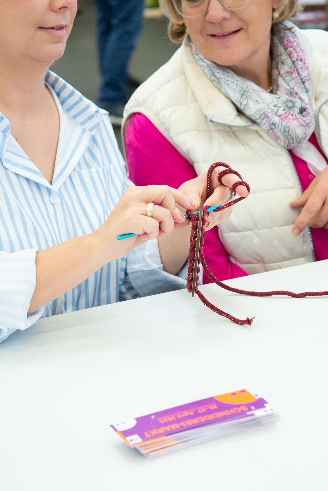 Wer selber probieren will, kann das Material vorab am Stand von Maschentanz erwerben